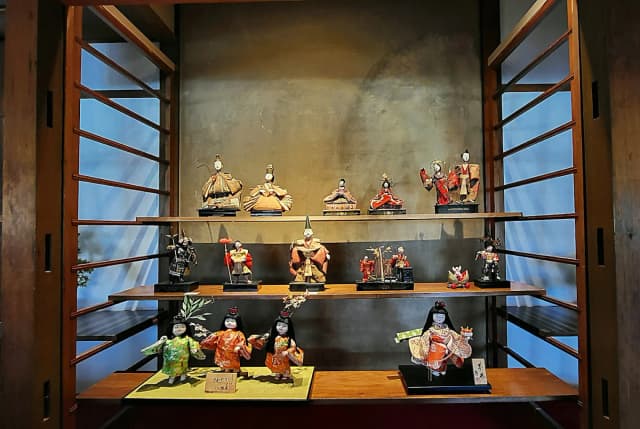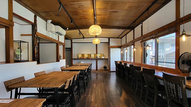 どこか懐かしい日本の暮らしを感じられる温かみのある店内には、明治・大正・昭和の雛人形や古い道具が飾られています。テーブル席を中心に、ひとり旅でもグループでも入りやすいカジュアルな雰囲気。観光の合間に、ほっと一息つける落ち着いた空間です。