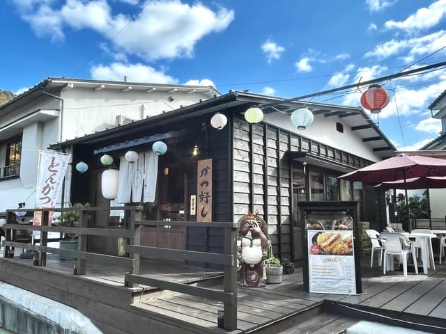 河口湖駅から湖へ向かう途中にある、立ち寄りやすい駅近のとんかつ定食屋さんです。国産豚肉を使用したサクサクでジューシーなとんかつや、約20cmの特大エビフライは、すべてご注文後に揚げたてでご提供しています。店内には明治・大正・昭和の雛人形など、どこか懐かしい日本の展示が並び、食事とともに楽しめる落ち着いた空間です。