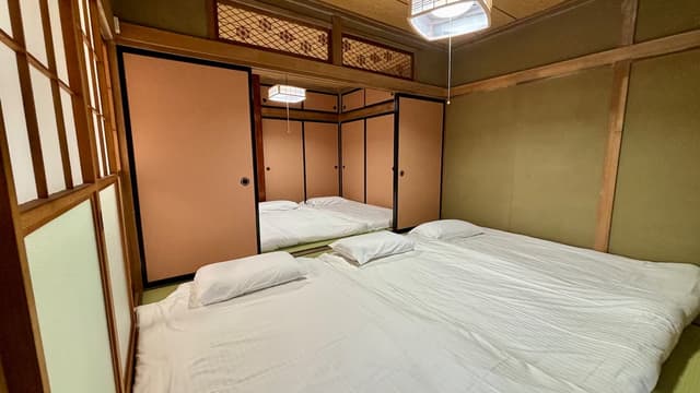 The house features two bedrooms and provides single futon sets according to the number of guests booked. Bath towels and face towels are also prepared for each guest. The calm and simple layout makes it suitable for families and small groups of friends.