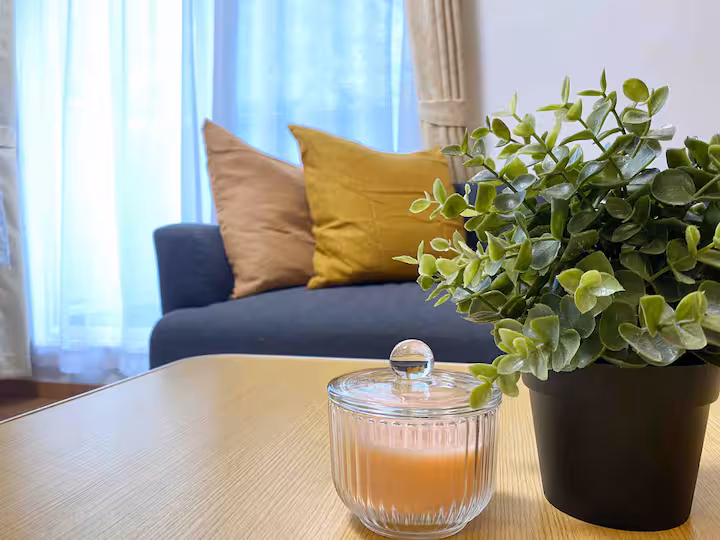 「清潔」「写真通り」「居心地が良い」という声が多く、照明やインテリアも“温かみがある/ロマンチック”と評価されています。新築・きれいめの印象が強いお部屋です。