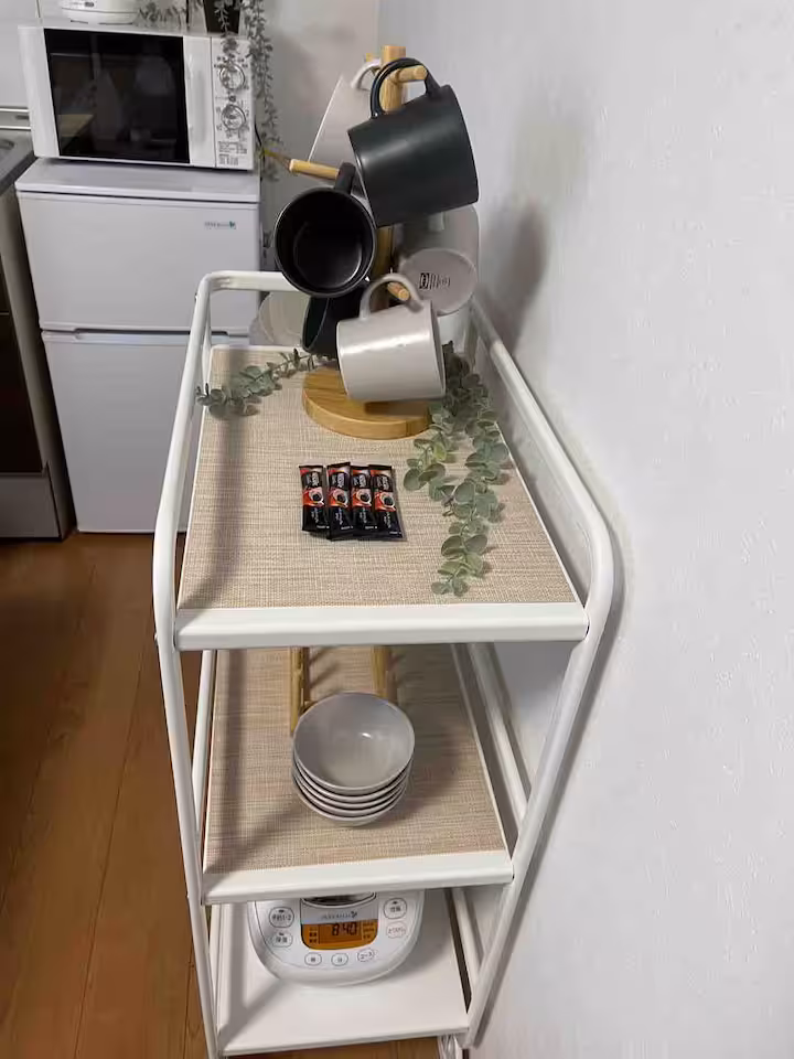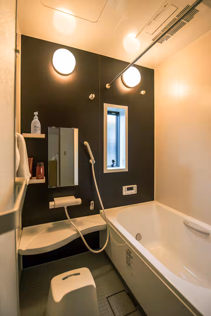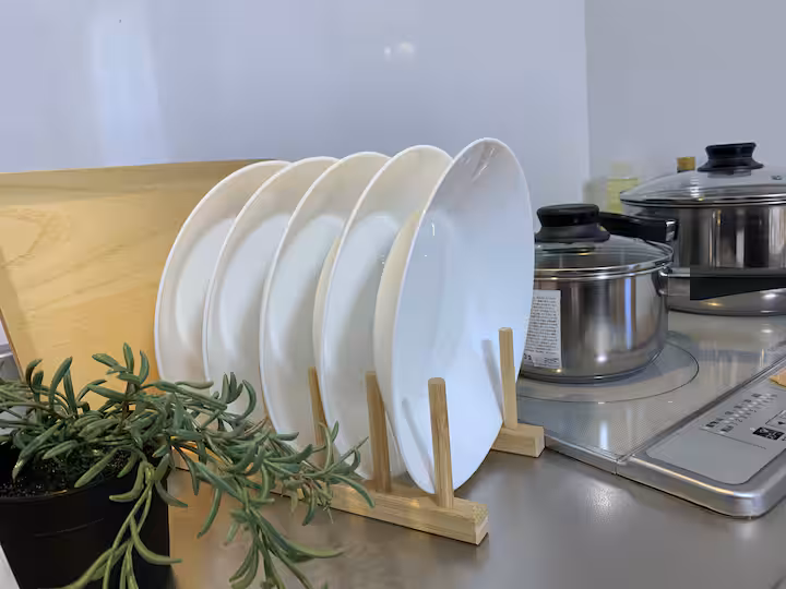 独立キッチン(電子レンジ・冷蔵庫・調理器具など)/洗濯機+浴室乾燥が便利という声/Wi-Fi利用可。簡単な自炊や連泊にも対応しやすい設備感です(※一部、ザルやボウルなど“本格調理”向け道具は不足と感じた例あり)。