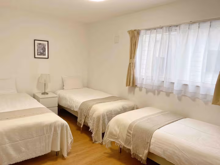 シングルベッドが5台ある点がグループに好評。寝具の質や寝心地が良いというコメントもあり、人数が多くても寝場所の調整がしやすい構成です。
