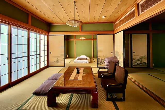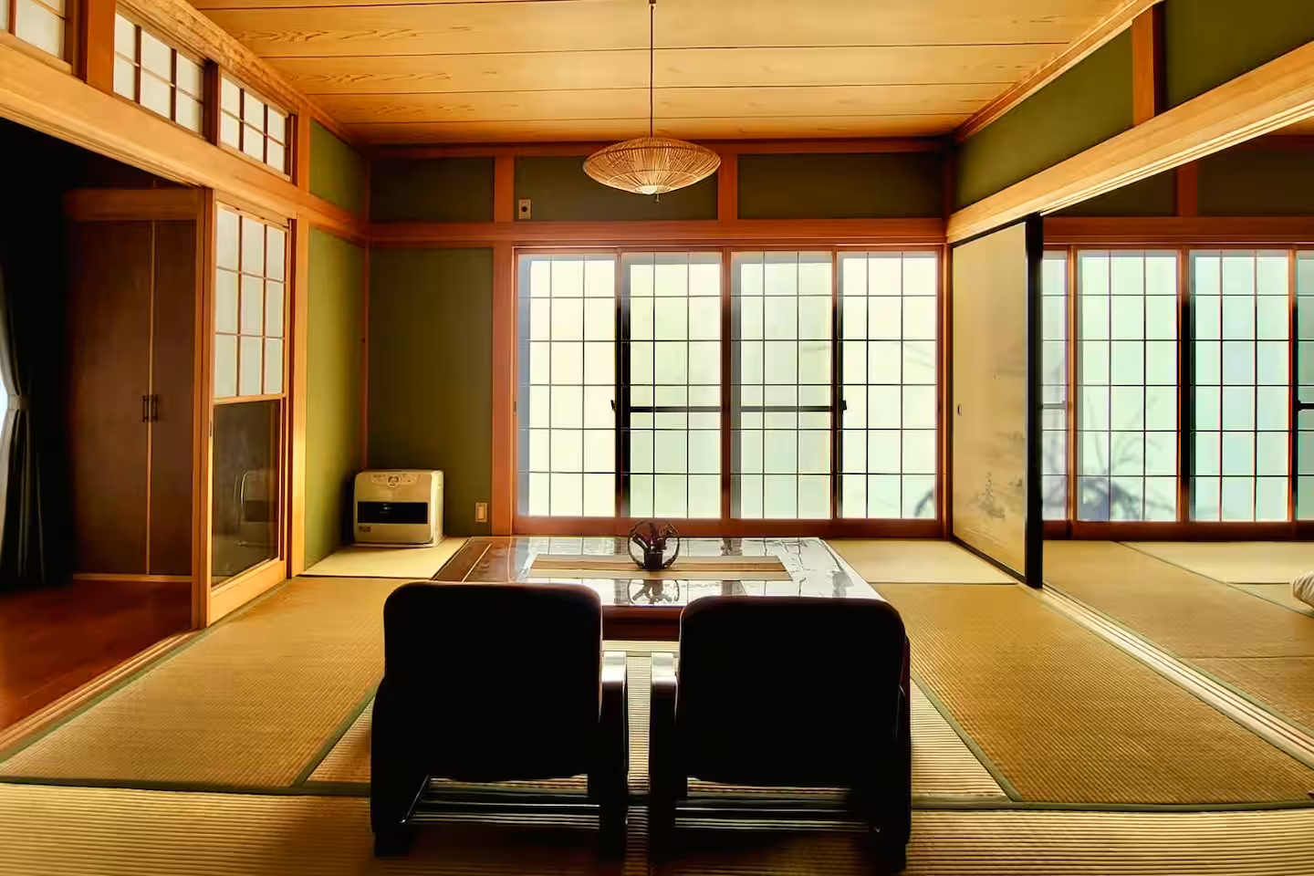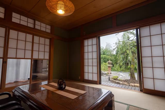 河口湖大石公園まで徒歩5分。富士山の迫力ある眺望と、四季折々の自然を満喫できる好立地の一軒家です。広々とした日本式の家屋を丸ごと貸切で利用でき、ご家族やグループでの滞在にぴったり。庭には池があり、静かな北岸の自然を感じながらゆったりとお過ごしいただけます。