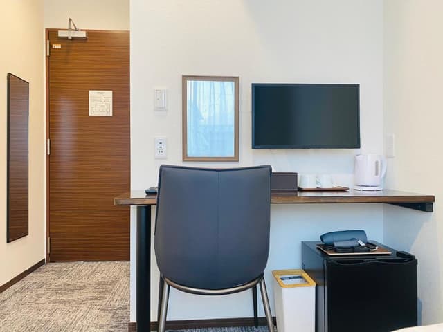 シングルベッド2台を備えたスタンダードなツインルームです。デスクもあり、旅の計画を立てたり、ちょっとした作業にもお使いいただけます。冷蔵庫、電気ポット、エアコン、薄型テレビ、ユニットバス、温水洗浄便座、無料Wi-Fiなどを備え、シンプルながら快適にお過ごしいただけます。