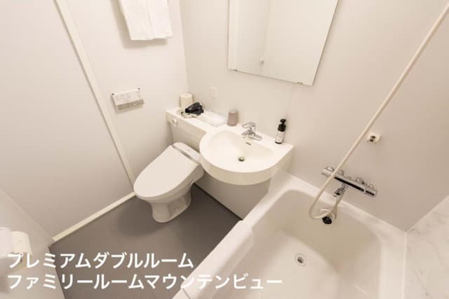 客室はシンプルでくつろげる造りで、薄型テレビ、電気ポット、ミニ冷蔵庫、専用バスルームを備えています。和洋室ツインは富士山を望む客室もあり、小上がりの畳スペース付きでご家族に人気です。ダブルルームは一人旅やビジネス、気軽な二人旅に最適。ファミリールームは布団を備えた和室タイプで最大6名まで宿泊でき、冬季はこたつの温もりも楽しめます。