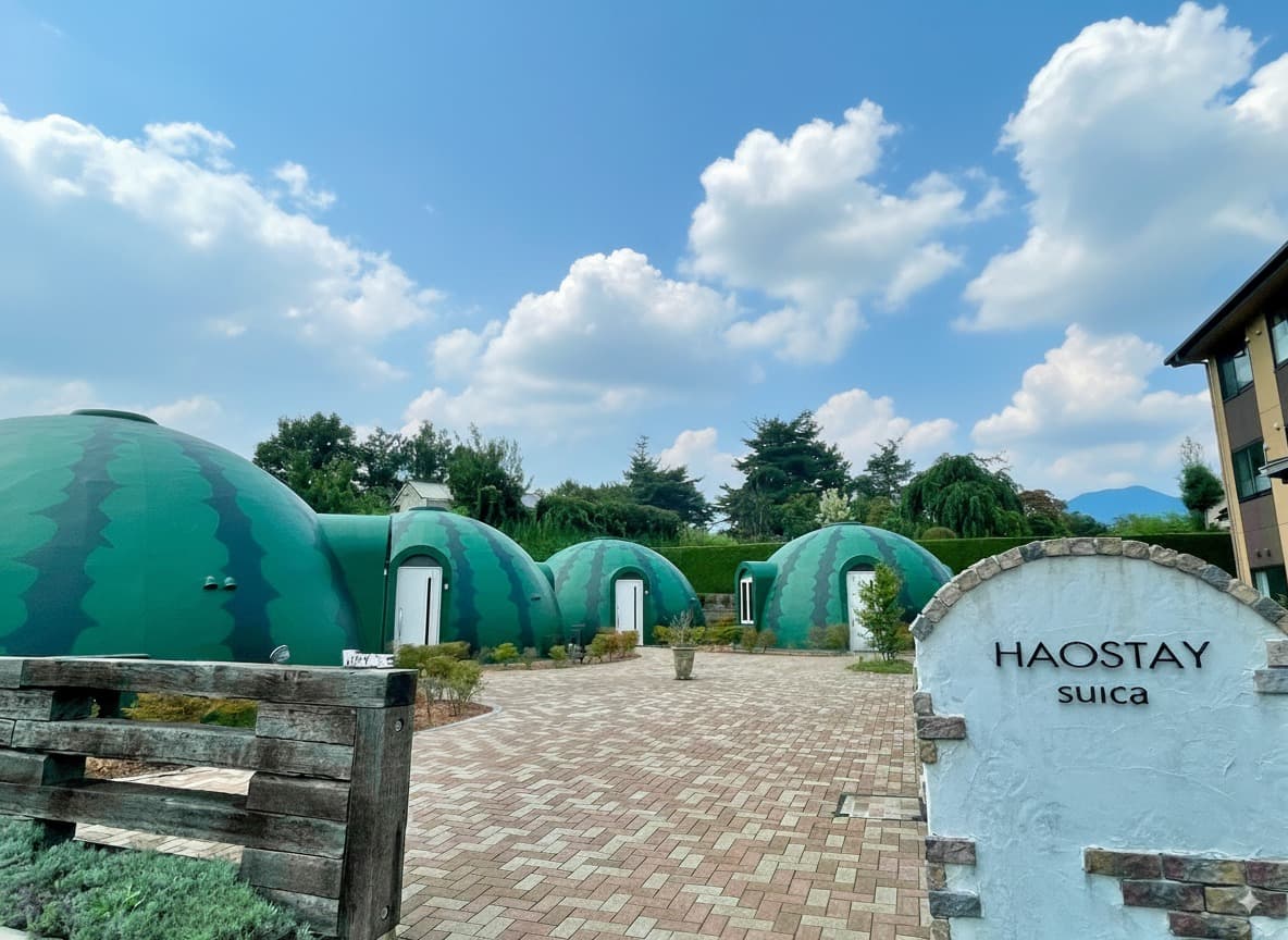 HAOSTAYは、富士山麓の静かな村並みに建つホテルです。屋上テラスからは富士山の雄大な景色を一望でき、河口湖まで徒歩5分、河口湖駅まで徒歩14分と観光にも便利です。当館の象徴ともいえる西瓜モチーフのドーム客室「スイカハウス」は、外観から内装までスイカカラーで統一された遊び心あふれる特別なお部屋で、家族連れや写真目的の旅行者に大変人気があります。自然に囲まれた落ち着いた環境で、ゆったりとお過ごしいただけます