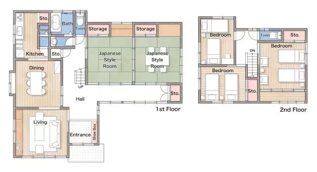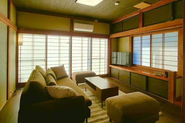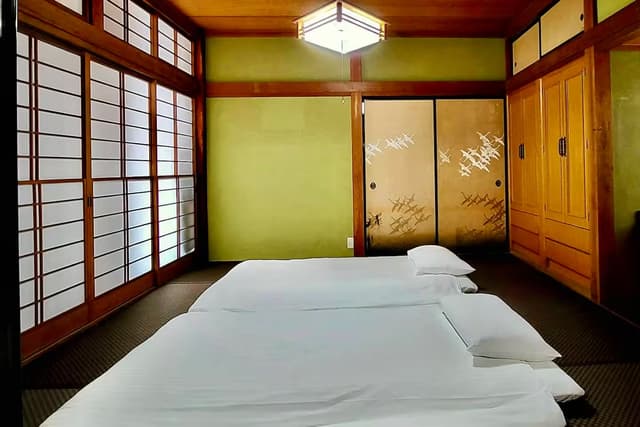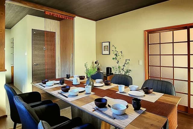 最大12名まで宿泊できる広々とした一軒家で、旅のスタイルや人数に合わせてご利用いただけます。シングルベッド6台のほか、人数に応じて和室に布団をご用意し、大人数でもゆったりとお過ごしいただけます。家族旅行、グループ旅行、友人同士の滞在におすすめです。