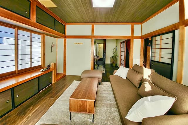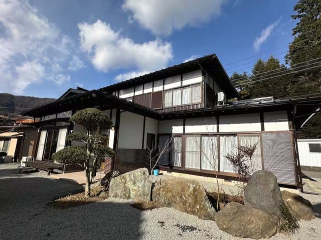 HAOSTAY横町は、河口湖駅から車で約11分、またはバス停「渡船場入口」から徒歩1分の静かな横町エリアに佇む、大型の伝統的な日本家屋です。周辺には「天空の鳥居」で知られる河口浅間神社や、河口湖音楽と森の美術館などの名所が徒歩圏内にあり、歴史と自然の魅力を感じられる立地です。また、家の窓からは雄大な富士山を望むことができ、季節ごとに異なる美しい表情を楽しめます。静けさに包まれた環境で、家族や仲間と過ごす特別な時間をお楽しみください。
